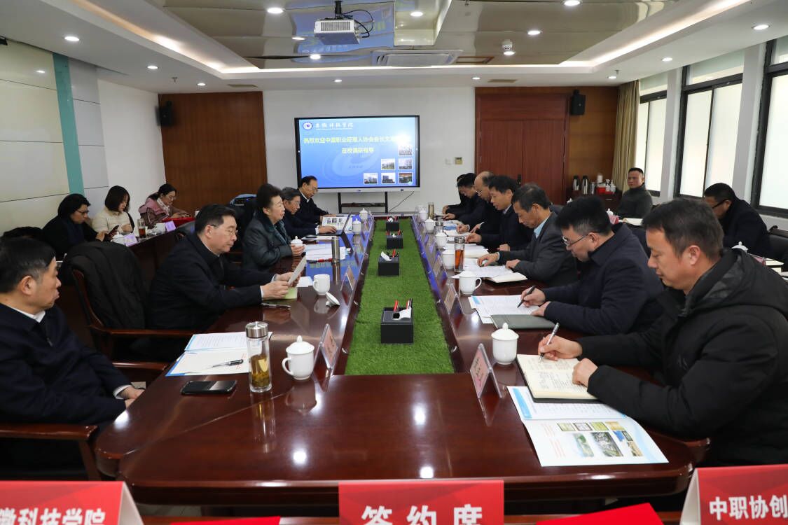 时伟在致辞中对文海英会长一行来校调研表示诚挚欢迎。他指出,学校文化底蕴深厚、办学特色鲜明;深耕内涵建设、办学成效显著;聚力特色一流、办学思路清晰;他介绍,学校高度重视毕业生就业工作,建设“两市一站”(即线下集市、线上超市、身边驿站)就业市场服务体系,取得较好成绩,毕业生就业率始终保持在省属高校前列,学校在2023年全省就业工作会议上作交流发言。他强调,近年来学校与中职协互动频繁、合作深入、成果丰富。他期待,双方拓展更多合作领域,取得更多合作成果,得到更多关心支持。