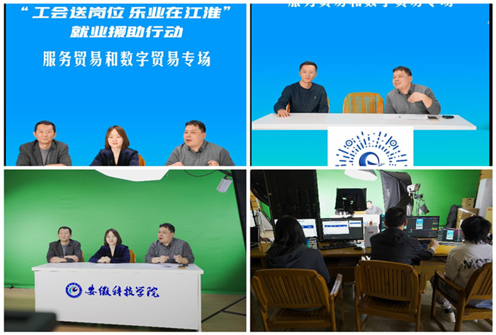 3月22日下午,“工会送岗位 乐业在江淮”就业援助行动直播招聘会——服务贸易和数字贸易专场活动在我校凤阳校区直播间举办。