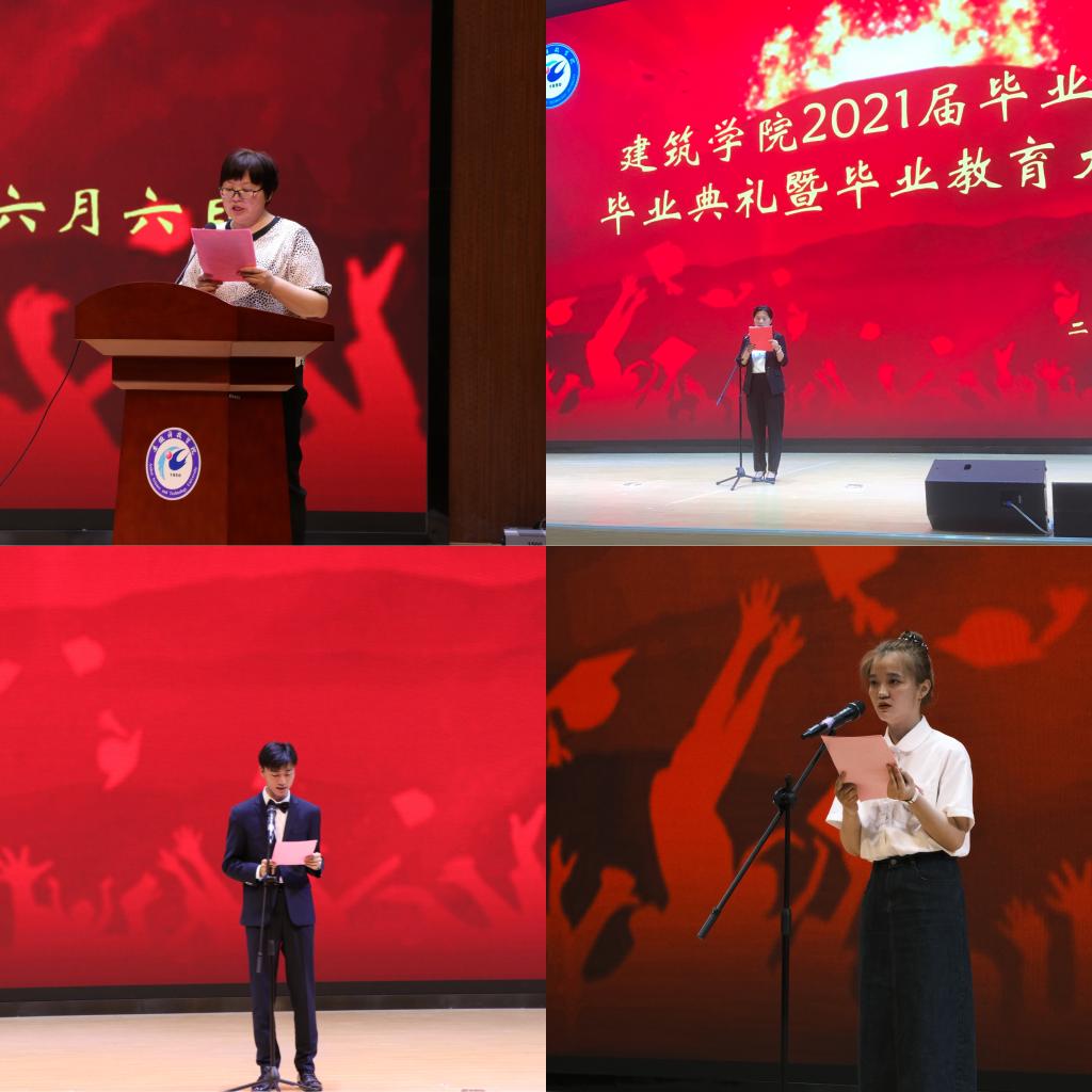 6月6日晚,建筑学院在龙湖校区东辅楼二楼报告厅隆重举行2021届毕业生毕业典礼暨毕业教育大会,学院党政领导、工会主席、教研室实验中心主任,部分教师和学生代表,2021届全体毕业生及辅导员参加。典礼暨大会由学院党委副书记谢宜勤主持。