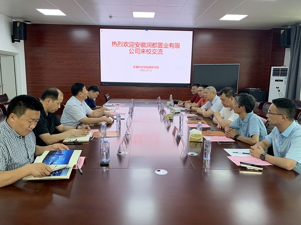 7月11日,安徽润都置业有限公司董事长韩贤志等一行5人,来建筑学院交流工作。蚌埠市园林管理处主任赵超、蚌埠市建筑设计研究院有限公司副总经理马辉、建筑学院院长张远兵、管理学院书记丁景良、生命与健康学院副院长(主持工作)孙玉军参加了交流会,会议由建筑学院副院长张伟主持。