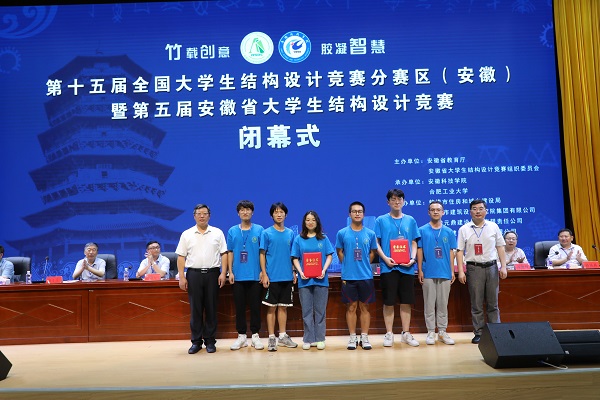 6月27日下午,由安徽省教育厅、安徽省大学生结构设计竞赛组织委员会主办,乐动网页版登录入口_乐动网页版(中国)、合肥工业大学承办的第十五届全国大学生结构设计竞赛分区赛(安徽)暨安徽省第五届大学生结构设计竞赛在我校龙湖校区图书馆东辅楼报告厅圆满闭幕。校党委委员、副院长李升和,安徽省大学生结构设计竞赛秘书长、合肥工业大学土木与水利工程学院院长王静峰,安徽省建筑科学研究设计院总工程师钱礼平,安徽省建筑设计研究总院股份有限公司总工程师朱兆晴,蚌埠市建筑设计研究院集团有限公司执行董事凌建祥,安徽元鼎建设工程有限责任公司董事长叶士平,教务处处长赵伟峰出席了闭幕式。仪式由建筑学院院长张远兵主持。
