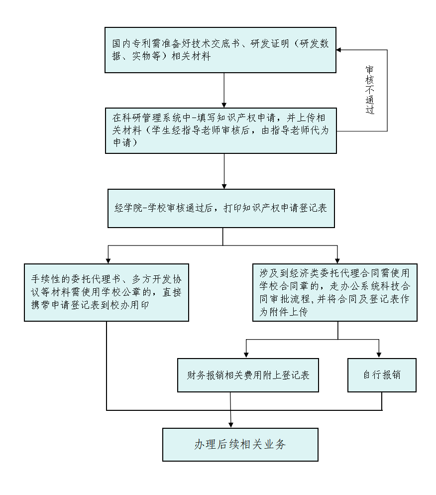 1、知识产权申请登记不再通过线下进行,审批通过后携登记表和有关材料到凤阳校区新图书馆10楼1002办公室进行用印。(涉及到科技合同审批的请按照科技合同流程进行)