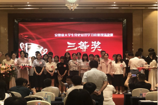 在现场决赛过程中,参赛选手们经过破冰环节、突围环节、冲刺环节及夺冠环节等几个阶段激烈的角逐,最终李绍红同学荣获安徽省大学生党史知识学习竞赛总决赛三等奖。在整场比赛中,李绍红同学沉着冷静,以优异的表现展示自身过硬的党史知识素养和我校大学生的精神风貌。