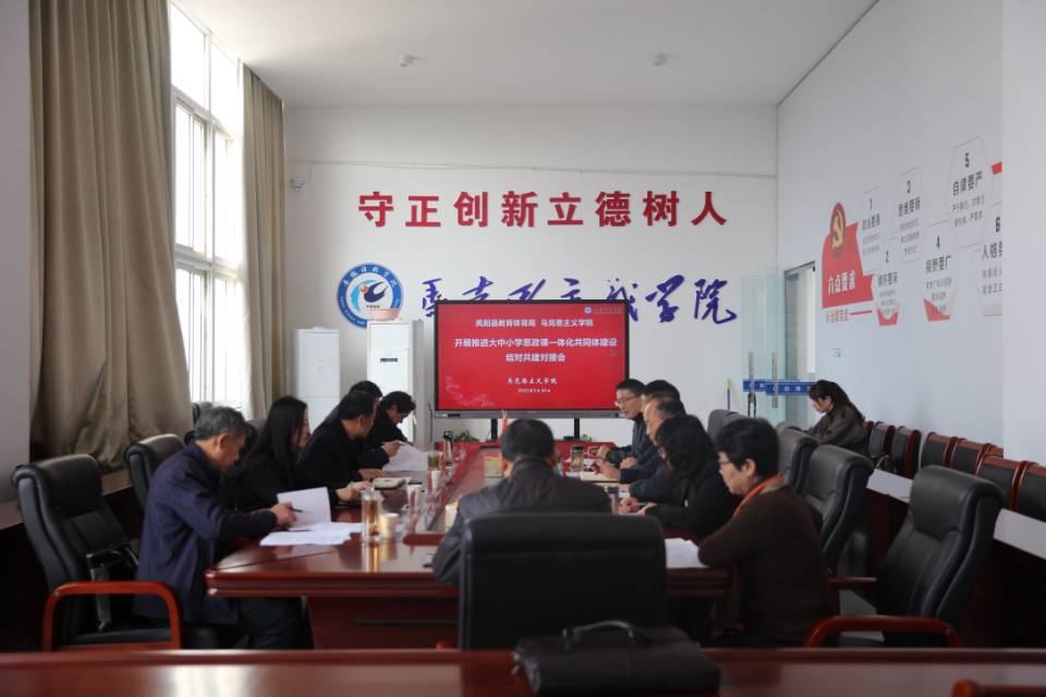 为深入贯彻落实党的二十大精神,全面推进大中小学思政教育一体化建设,充分发挥学校思政课立德树人关键课程作用,切实提升思政教育铸魂育人实效,3月30日上午,凤阳县委教体工委书记、教育体育局局长刘文春,教体工委副书记顾斌一行,来到乐动网页版登录入口_乐动网页版(中国)马克思主义学院学术交流中心与我院开展推进大中小学思政课一体化共同体建设结对共建对接会。对接会由马克思主义学院党总支副书记、院长张德化主持,马克思主义学院党总支书记杨仕勇,副院长张栋等出席会议。