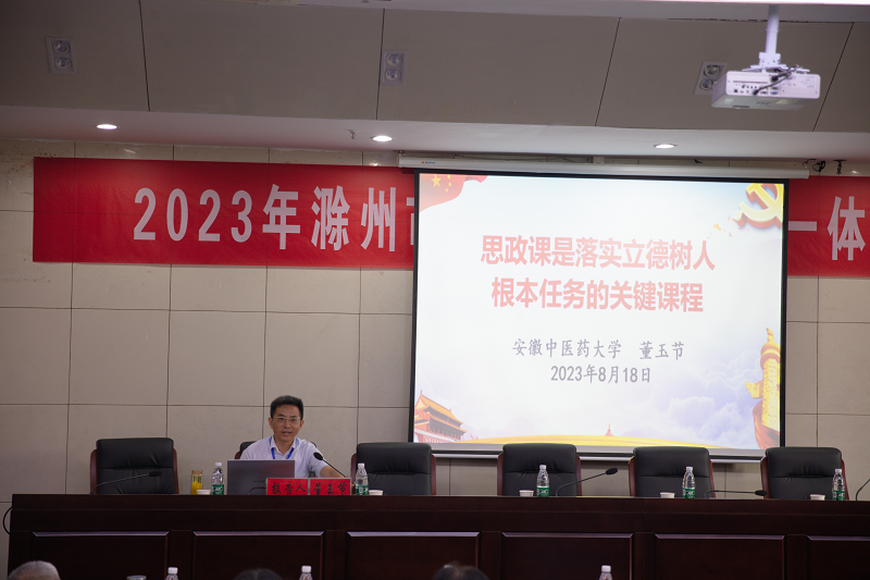 安徽省高校思政课教指委办公室主任、安徽中医药大学马克思主义学院院长董玉节教授围绕《思政课是落实立德树人根本任务的关键课程》,就把握立德树人的基本内涵与实践要求、新时代办好思政课意义重大、讲好思政课关键在教师、推进思政课改革创新等四个方面进行理论和实践阐释。