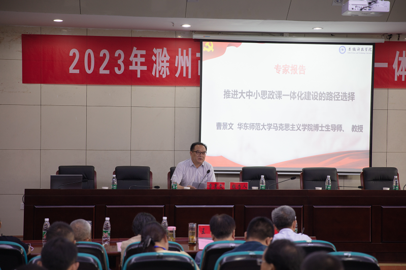 为深入学习宣传贯彻党的二十大精神,贯彻习近平总书记关于思政课建设的重要论述,持续推动滁州市大中小学思政课一体化建设内涵式发展,8月18日上午,由乐动网页版登录入口_乐动网页版(中国)、滁州市教育体育局主办,乐动网页版登录入口_乐动网页版(中国)马克思主义学院承办的2023年滁州市大中小学思政课一体化教学展示活动在乐动网页版登录入口_乐动网页版(中国)凤阳校区第一报告厅举行。滁州市委教体工委委员、滁州市教体局副局长徐赟,乐动网页版登录入口_乐动网页版(中国)马克思主义学院党总支书记杨仕勇出席开幕式并致辞。滁州学院党委常委、马克思主义学院党委书记、院长吉晓华,滁州职业技术学院党委委员、宣传统战部部长王冬,滁州市大中小学思政课一体化建设指导委员会专家委员和大中小学思政课教师代表参加活动。开幕式由我校马克思主义学院党总支副书记、院长张德化主持。