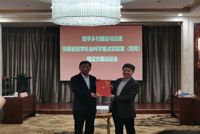 会上,论证专家组听取了郑谦关于实验室建设方案编制情况的汇报,认真审阅了相关材料,经过集体讨论和评议一致认为,建设方案目标明确、内容充实、举措切实可行,同意通过论证,并就建设方案完善提出了可行性建议。专家组指出,建设方案认真分析了我省现代农业农村发展的重大需求,聚焦了数字乡村建设与社会治理的关键问题,汇聚了有关高校、地方政府和企业的优质资源,形成了优势互补、强强联合、资源共享的创新协同体。方案依托单位能够提供实验室建设所需的软硬件设施和运行所需的政策、经费等“四独立一特殊”相关支持,实验室管理制度设计具有创新性,较好地体现了中共安徽省委教育工委、省委宣传部的文件要求,将有力提升学校在安徽省数字乡村建设和治理中的影响力和贡献度。