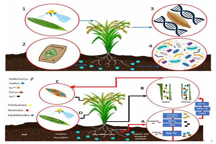 硒是人类和动物必需的微量元素,有研究表明全球有近10亿人不同程度缺硒。为解决“隐性饥饿”问题,赵其国院士引入功能农业概念,提出农产品的营养化、功能化,来满足“吃出健康”的新需求。面向这一农业发展新方向,全球越来越多学者开展了相关研究。这篇综述旨在提供全球硒生物强化方法的研究现状,讨论硒生物营养强化相关发展策略、进展以及挑战。已有的硒生物营养强化四大策略为:叶面喷施硒肥、土壤施硒肥、微生物辅助营养强化以及基因营养强化。目前,研究人员不仅利用各种技术提高作物和牲畜可食用部分的硒含量,以解决硒摄入量偏低的问题,也从硒资源保护的角度出发,对农产品的生物营养强化效应进行了深入研究。与此同时,该方向也还存在诸多挑战,一方面是“正向研究”,即:围绕“土壤-作物-动物-食物-人体”链条中功能物质的传输规律尚不完全清楚,硒生物营养强化过程中硒生物有效性、传输效率、形态转变和健康效应机制等问题研究仍不够系统。另一方面是在研发“逆向调控技术”,即:围绕满足人的健康的“个性化、标准化和特殊化”的食用需求,需要对硒元素进行逆向精准调控,这一过程需要更多先进的工程技术手段来实现。(特约通讯员:刘晓丹 审核:陈丰)