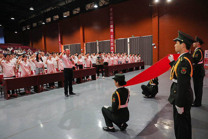 会上,王孝义宣读了2022年以来学校在教学、师德、科研、管理等方面获得省级以上表彰和奖励人员名单,并带领新进教师进行了集体入职宣誓。本次会议还向2022年以来退休教职工代表、获得“光荣执教三十年”荣誉称号的教师代表颁发了证书,新进教师代表向他们献花并合影留念。