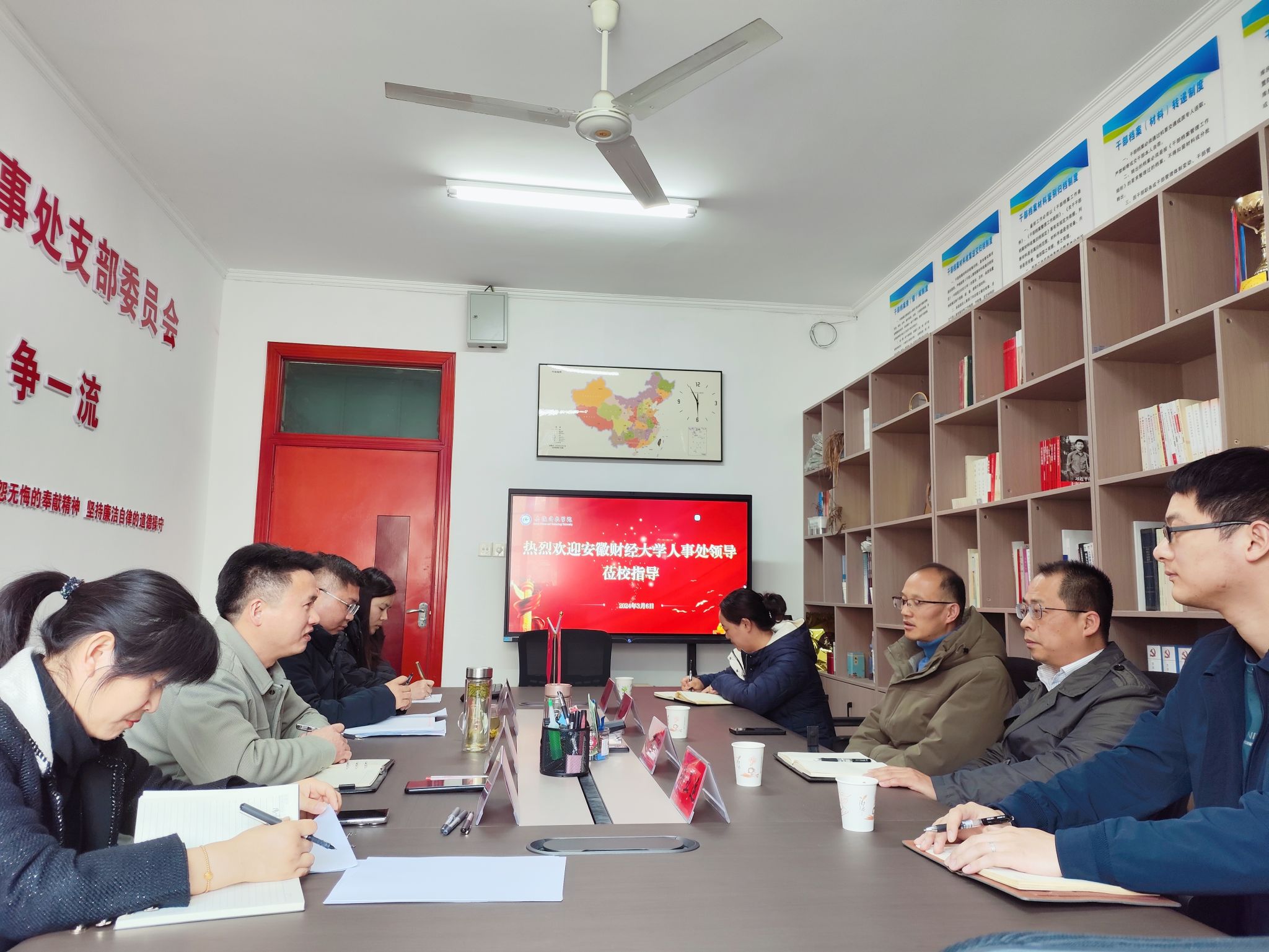 为进一步加强博士后科研工作站建设,积极开展博士后科研工作站管理与服务工作。3月6日下午,安徽财经大学人事处副处长王平一行4人来我校开展博士后科研工作站调研交流,党委教师工作部部长、人事处处长、人才工作办公室主任詹学文主持调研交流会,部门其他相关人员参加会议。