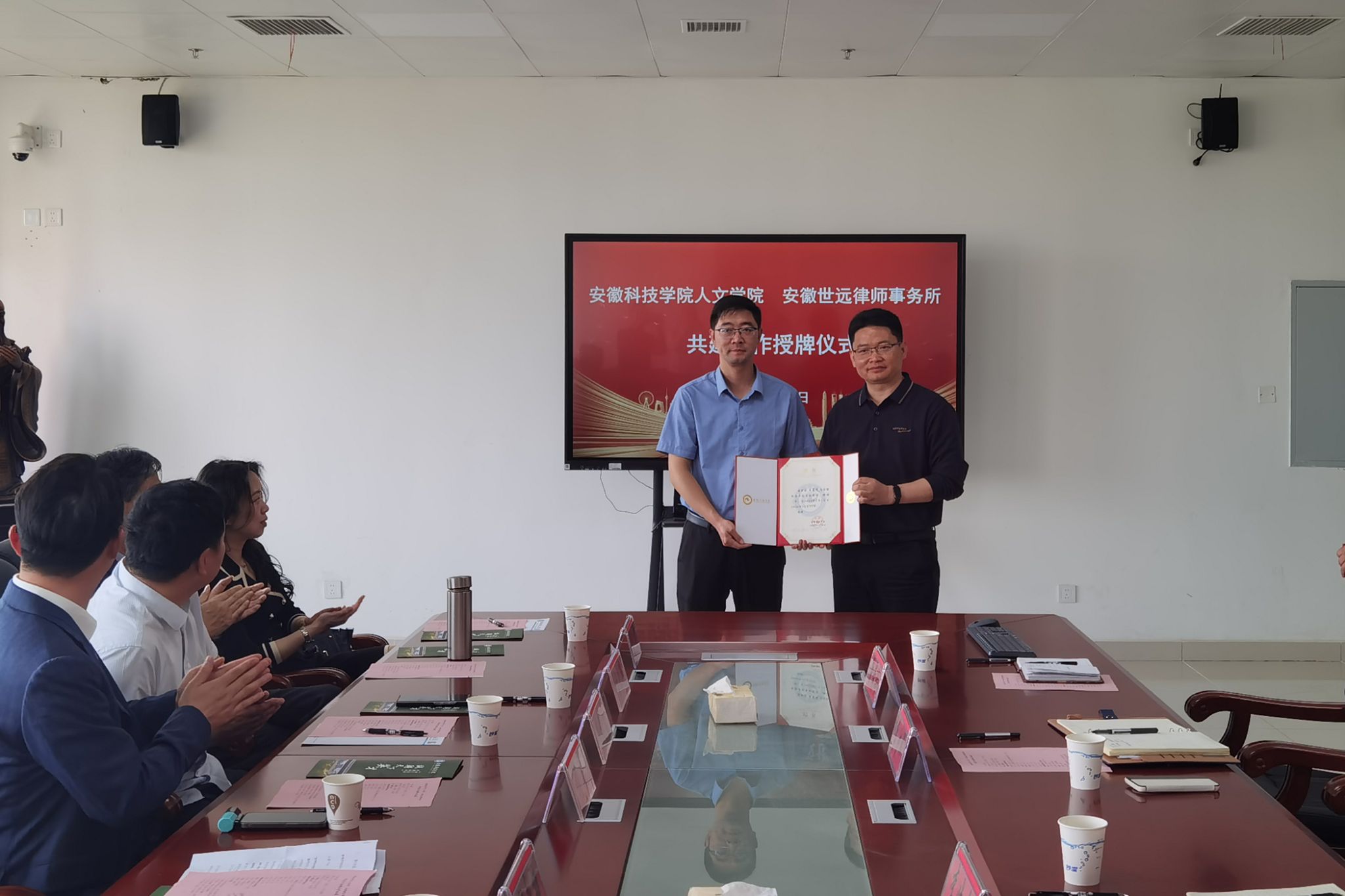 4月16日下午,人文学院与安徽世远律师事务所举行共建合作授牌仪式。安徽世远律师事务所执行主任段永梅,安徽世远(合肥)律师事务所主任程聪,合伙人王应选、侯培培,律师黄保轩、宫厚军、张大成、唐雯、张文艳;人文学院党委副书记、院长李晓东,副院长牛永辉,党委副书记李沙娜,法学系教授骆绪刚,辅导员徐琦琦出席。仪式由牛永辉主持。