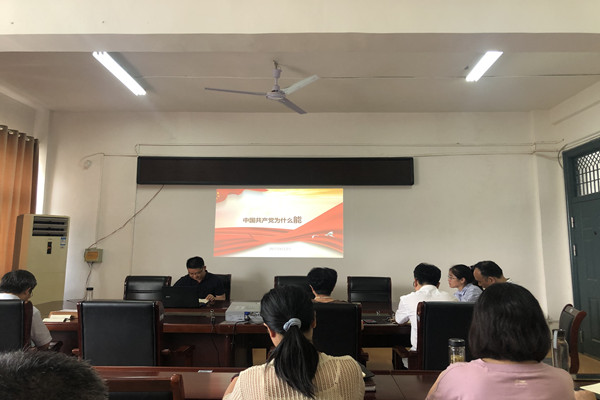 为深入学习贯彻习近平总书记在党史学习教育动员大会上的重要讲话精神,从党的百年伟大奋斗历程中汲取继续前进的智慧和力量,6月2日下午,人文学院副院长牛永辉以“中国共产党为什么能”为主题,在学院会议室为教职工做了一场党史学习教育专题报告会,报告会由人文学院党委书记杜士凤主持,全体教职工参加。