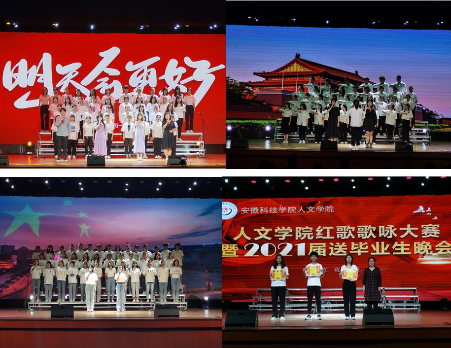 为庆祝中国共产党成立100周年,感悟我们党在百年非凡历程中创造了彪炳史册的辉煌业绩,讴歌党谱写中华民族千秋伟业新篇章的伟大意义,同时在全院营造庆祝中国共产党成立100周年浓厚氛围,引领全院团员青年不忘红色记忆、筑牢理想之基,6月4日晚,人文学院在大学生活动中心组织开展红歌歌咏大赛暨2021届送毕业生晚会。