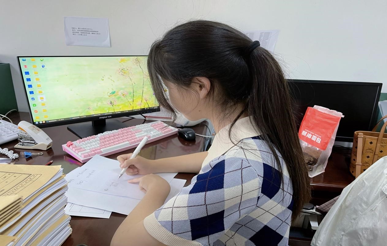 七月,王越怀着赤诚的心踏入霍山县人民检察院大门。在工作人员的带领下,王越开始了协助检察官的工作。整理卷宗、观摩庭审、做笔录等工作,充实着她的每一天:“我早晨七点半乘坐十几分钟公交车去检察院报道,认真完成每天的工作任务,虽然天气比较炎热,但在检察官们的指导下和不断的实践中,我有了非常大的收获。”