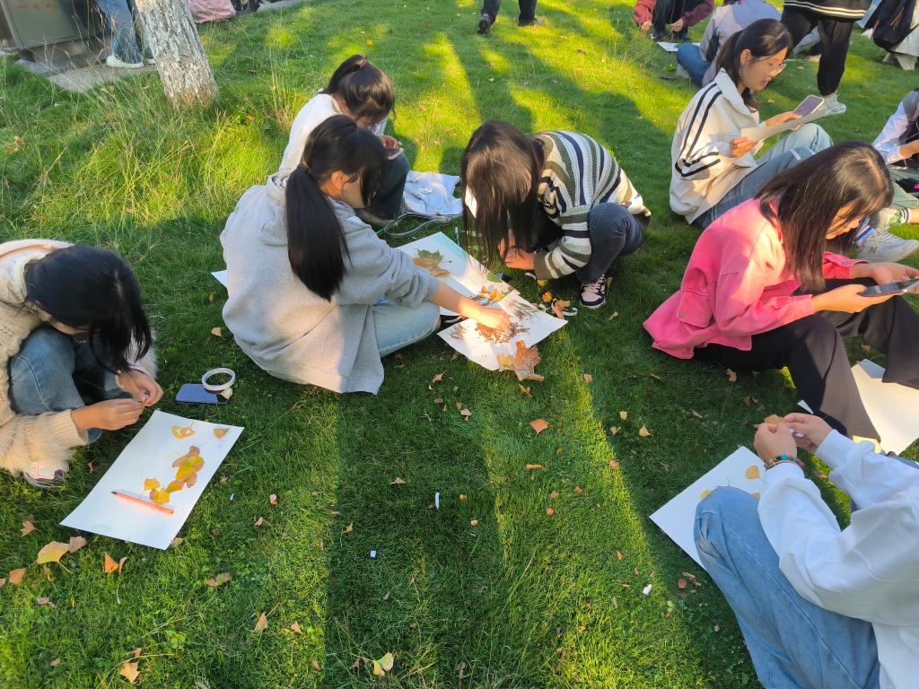 秋意落,万物成诗。秋日的枯黄落叶,人文学子用双手串成大自然的捕梦网;秋日的阳光,照射在人文学子明媚的笑脸上,三三两两围坐一起,动手收集身边的“秋日足迹”,乐趣讨论,奇思妙想,绘制着秋日的安科印象图。一片落叶,一支画笔,一副情趣盎然、富有创意的秋日风景便跃然纸上;同学互相合作,分享想法,一同制作。在融洽的氛围与和煦的阳光下,创意活动井然有序地开展,现场工作人员奔走草地记录美好,细心收起作品,在微风轻拂中珍藏一个个秋日的梦。