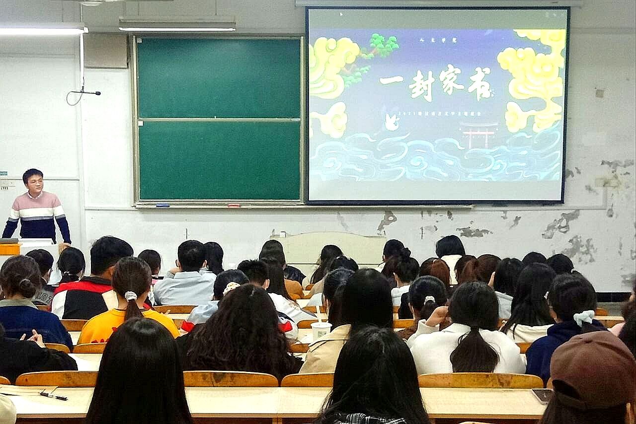 为传承孝道为先的传统美德、弘扬中华优秀传统文化,加强感恩教育,11月15日晚,人文学院在求A201教室开展了“一封家书”主题教育,学院汉语言文学学生参加了此次活动,活动由方明旺主持。