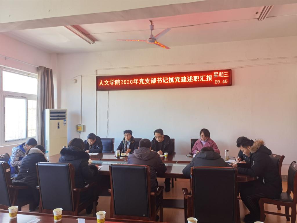 为深入学习贯彻习近平新时代中国特色社会主义思想,落实党的十九大和十九届四中、五中全会精神,坚决落实党风廉政建设各项工作要求,坚持党要管党、全面从严治党。根据《中共乐动网页版登录入口_乐动网页版(中国)委员会关于开展2020年度基层党组织书记抓党建述职评议考核工作的通知》文件要求,人文学院于1月13日上午在学院会议室召开2020年度基层党支部书记抓党建述职评议会。学院党总支委员、党支部委员、工会主席、民主党派和无党派教师代表以及学生党员代表参加。会议由党总支书记杜士凤主持。
