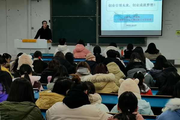12月17日晚,应人文学院邀请,上海普行文化传播有限公司总经理周备峰来校,在新知楼A104教室举办了“创业引领未来,创业成就梦想”主题讲座。讲座由人文学院中文系副主任和建伟主持。