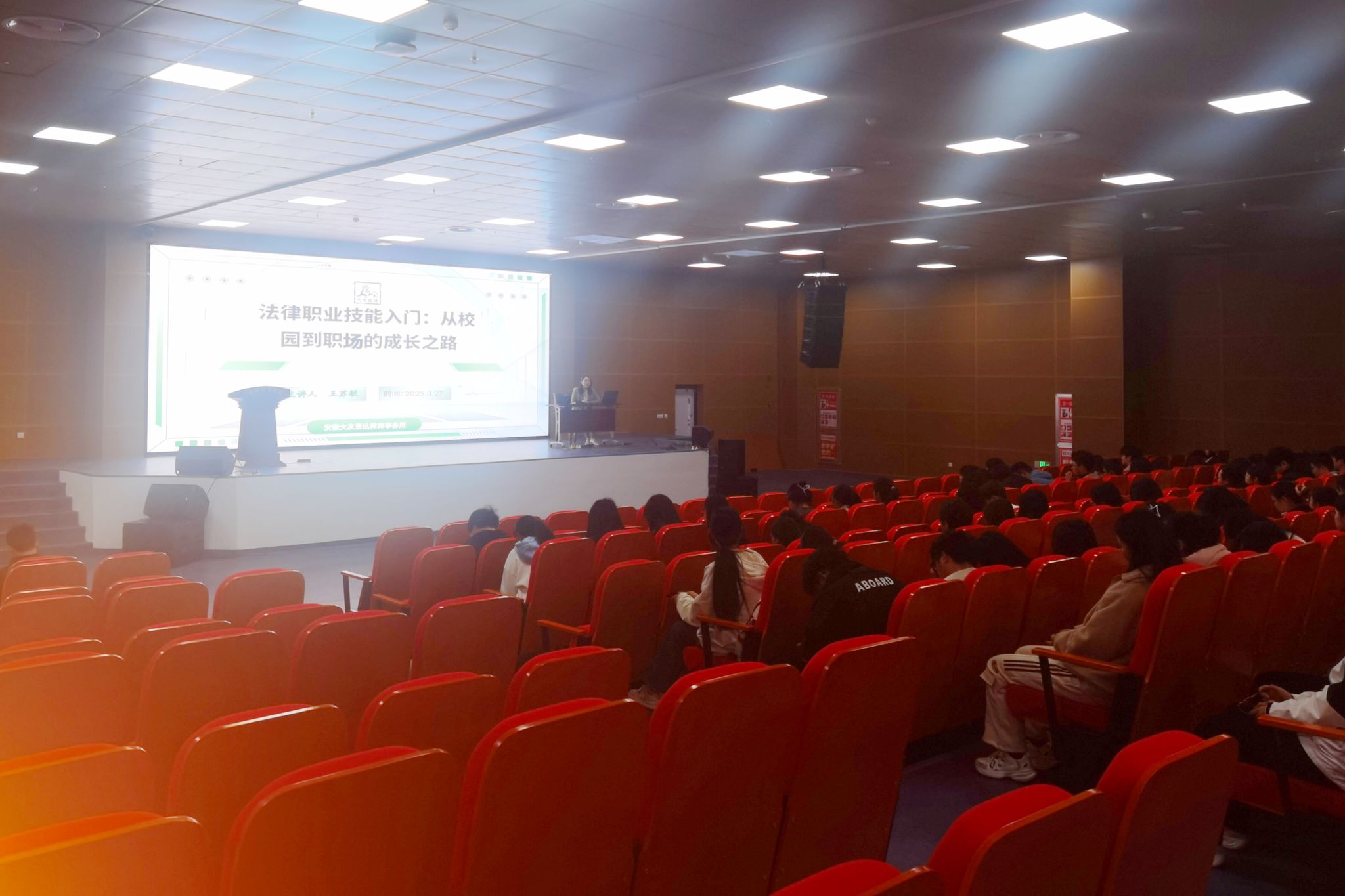 3月28日下午,安徽大友昱达律师事务所主任、2008届法学专业校友王苏敏,应邀在图书馆二楼报告厅举办学术报告会。法学专业师生参加报告会。会议由人文学院副院长牛永辉主持。