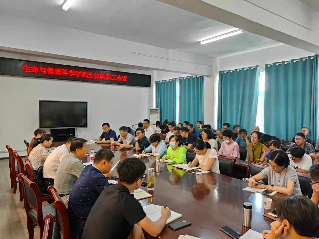 9月1日上午,生命与健康科学学院在学院会议室召开期初全体教职工会议。学院党政领导和全体教职工参加会议,会议由学院党委副书记(主持工作)张传德主持。