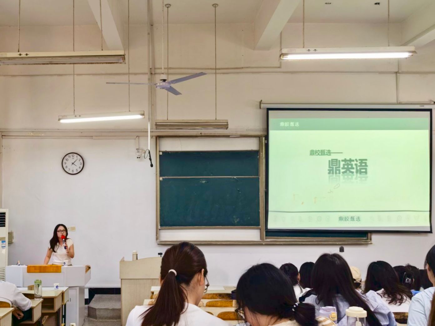 4月28日下午,外国语学院邀请安徽鼎校教育科技有限公司(以下简称鼎校教育)来校开展企业宣讲会并开展现场招聘活动。宣讲分别在求知楼A座107和201教室进行,学院党委书记蔡为青以及学院2022级全体学生参会。宣讲会由学院副科级辅导员张薇薇主持。