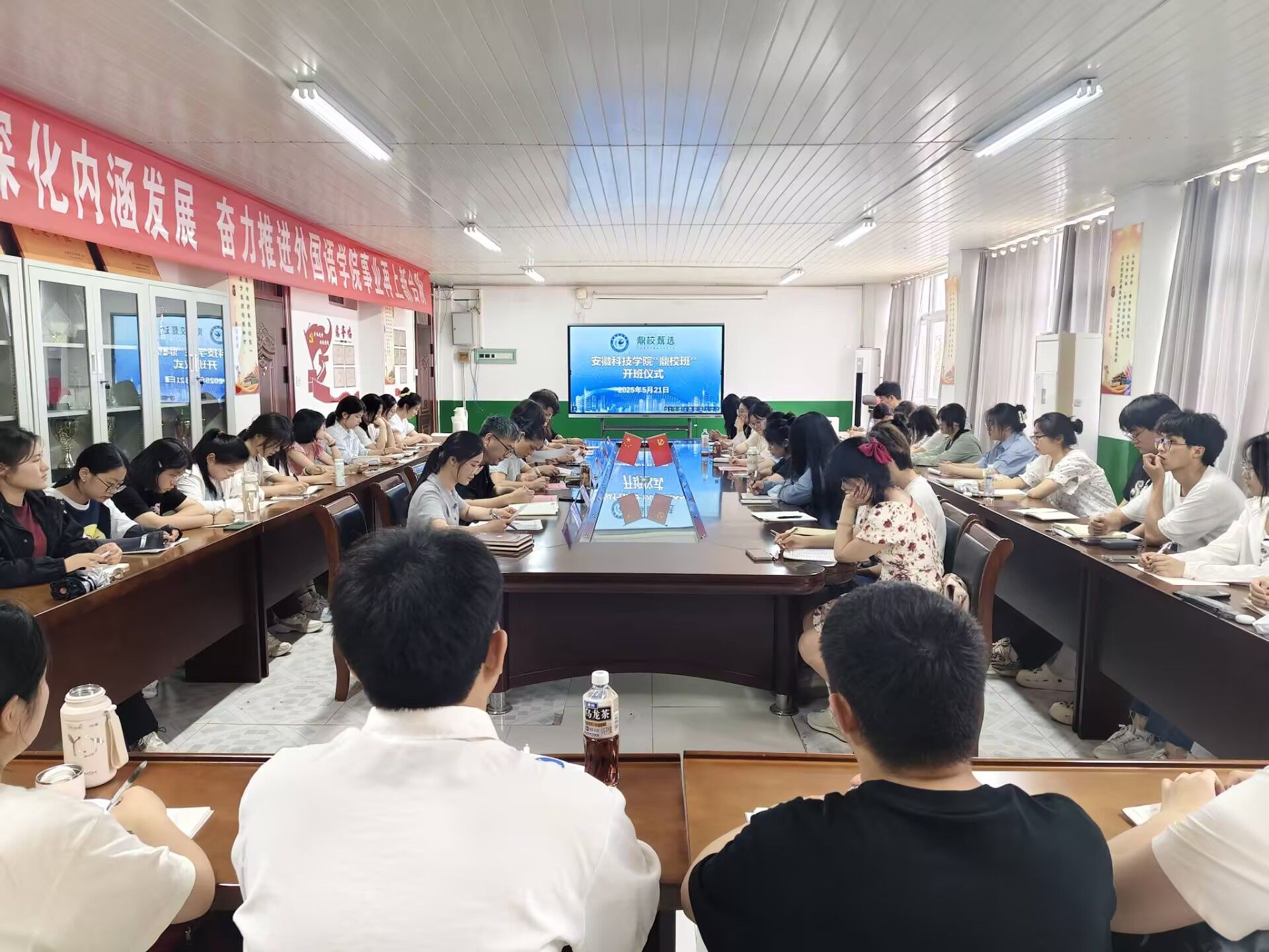 5月21日下午,乐动网页版登录入口_乐动网页版(中国)“鼎校班”开班仪式在学院会议室举行。外国语学院党政领导、安徽鼎校教育科技有限公司(以下简称“鼎校教育”)相关负责人以及“鼎校班”40名学员参与活动。开班仪式由学院党委副书记张海亮主持。