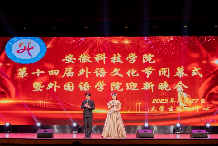 闭幕式晚会节目形式丰富多样,内容积极向上,编排富有创新,通过不同的表演形式,彰显大学生青春风采,为在场的观众献上了一场视听盛宴。独具特色的话剧《最美校长》以优秀校友扎根基层教书育人的先进事迹而改编,阐释了师德与师风内涵。动感十足的舞蹈展现当代安科学子的青春活力,动听的英文歌曲彰显了英语的独特魅力和专业特色,精彩的相声充分调动现场活跃气氛,留学生倾情献唱歌曲《Lean on me》表达了对中华优秀传统文化的热爱。演员们用精湛的表演赢得在场观众的一致认可,掌声不断,气氛热烈。