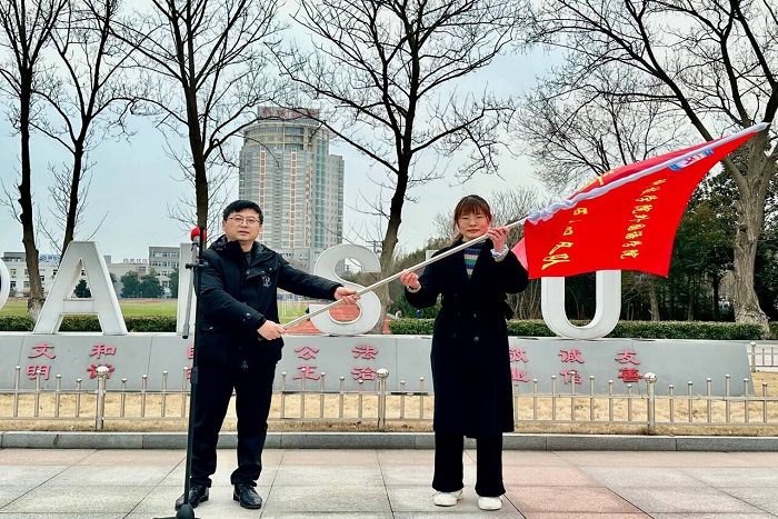 启动仪式上,张薇薇宣读了《外国语学院关于开展2024年“学雷锋志愿服务月”实践活动的通知》;翻译223班班长奚友超代表全体青年做“学雷锋志愿服务”表态发言。
