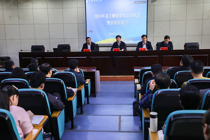 4月12日上午,我校在凤阳校区一楼报告厅举办“说文解制”讲堂启动仪式暨首场宣讲会。党委书记时伟出席启动仪式并讲话。党委(院长、法治)办公室主任卢星辰主持启动仪式。说文解制讲堂活动相关责任部门负责人,各单位、各部门法治工作联络员及法治工作相关人员等100多人参加会议。