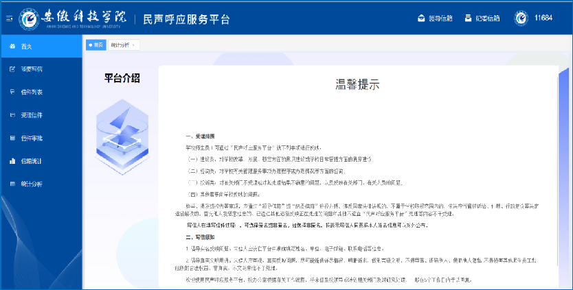 根据上级有关要求及党委工作部署,近日,在整合我校现有各类信访渠道基础上,党委(校长、法治)办公室牵头创建的民声呼应服务平台正式上线运行。