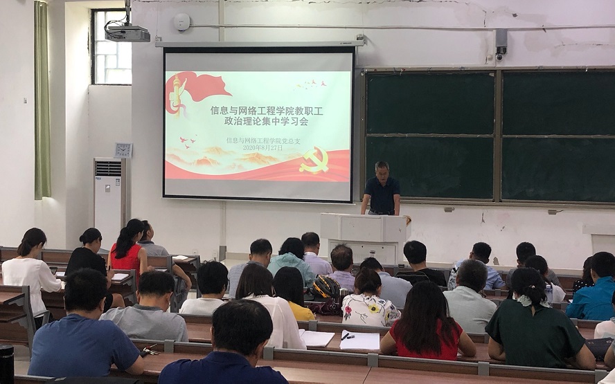 8月27日上午,信息与网络工程学院在致知楼C111开展全体教职工政治理论集中学习会,学习贯彻习近平总书记视察安徽重要讲话精神并部署我院贯彻落实工作。学院党总支书记王振其主持会议,全体教职工参加本次学习会。