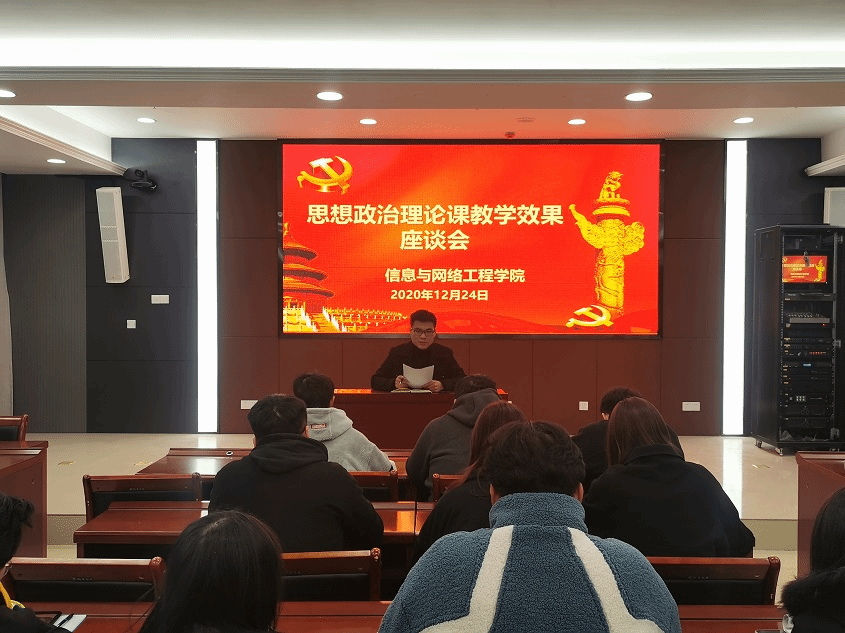 为了进一步提升思想政治理论课教学质量,切实发挥好思想政治理论课主渠道和主阵地作用,增强学生的获得感。 12月24日下午,信息与网络工程学院于西辅楼111会议室召开了思想政治理论课教学效果调研座谈会。2018级、2019级、 2020级各班级学生代表参加座谈会,会议由专职辅导员李军成主持。