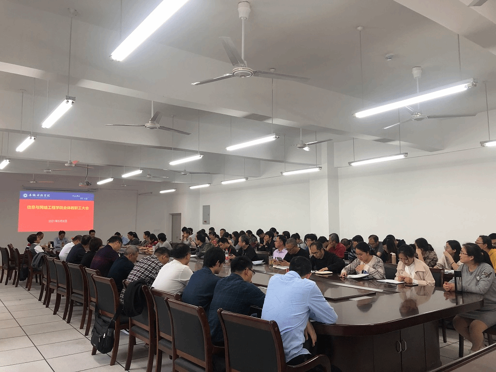 为进一步落实中央巡视整改任务,扎实做好学校省委巡视反馈意见整改情况的学习宣传工作,5月8日下午,信息与网络工程学院在尚行楼B418召开全体教职工大会。学院院长余宏杰,正处级组织员周向群,党委副书记韦乃学,副院长何恩节,副院长曹浩及全体教职工参加会议,会议由余宏杰主持。