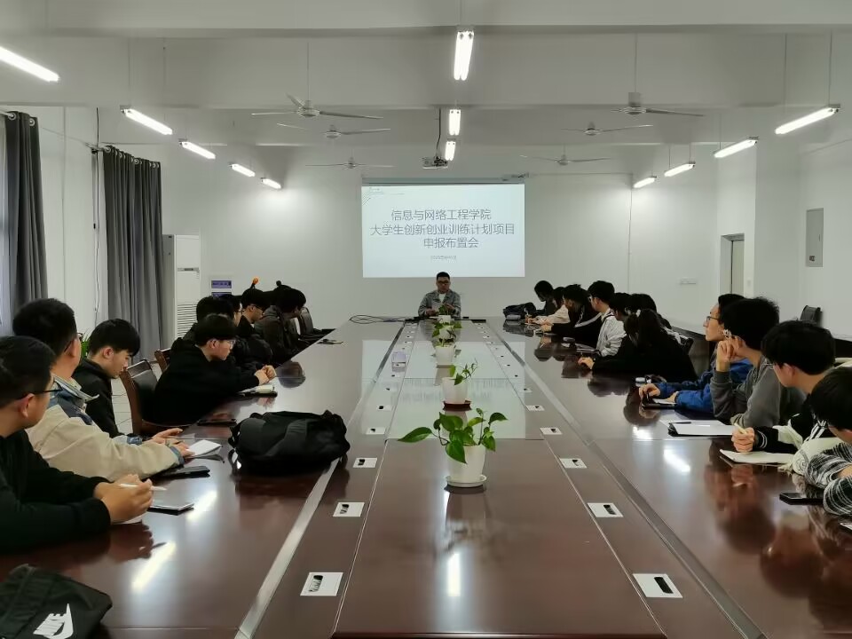 为了进一步推动大学生创新创业训练计划项目申报工作,4月6日下午,信息与网络工程学院在尚行楼B418召开大学生创新创业训练计划项目申报布置会。学院副院长曹浩、辅导员李军成、许磊、学生会科创部成员和各班级科创委员参加了会议,会议由曹浩主持。