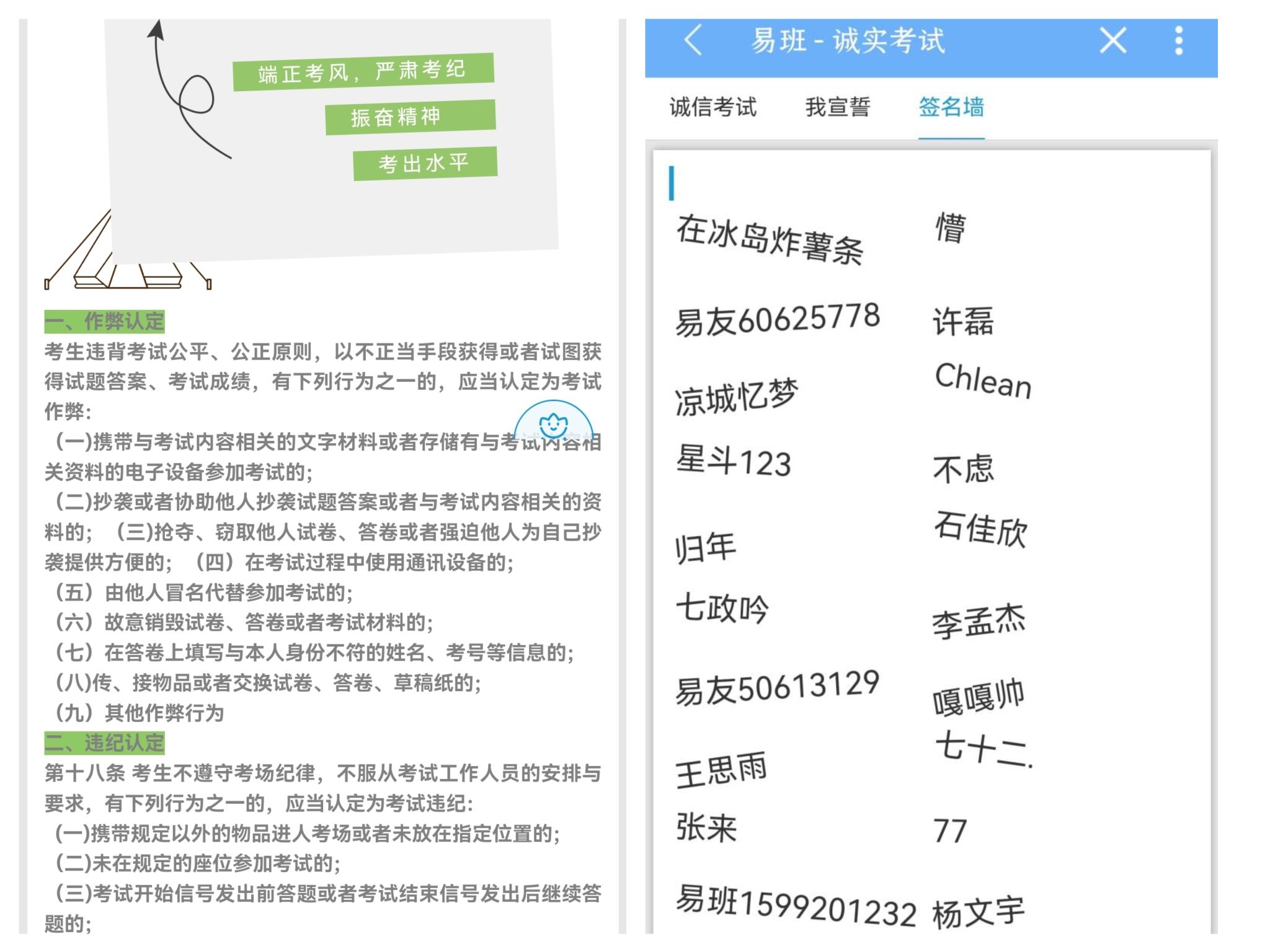 为进一步端正考风、严明考纪,增强学生诚信文明意识,近期,信息与网络工程学院各班级陆续召开诚信考试教育主题班会,会议由各班辅导员组织召开。