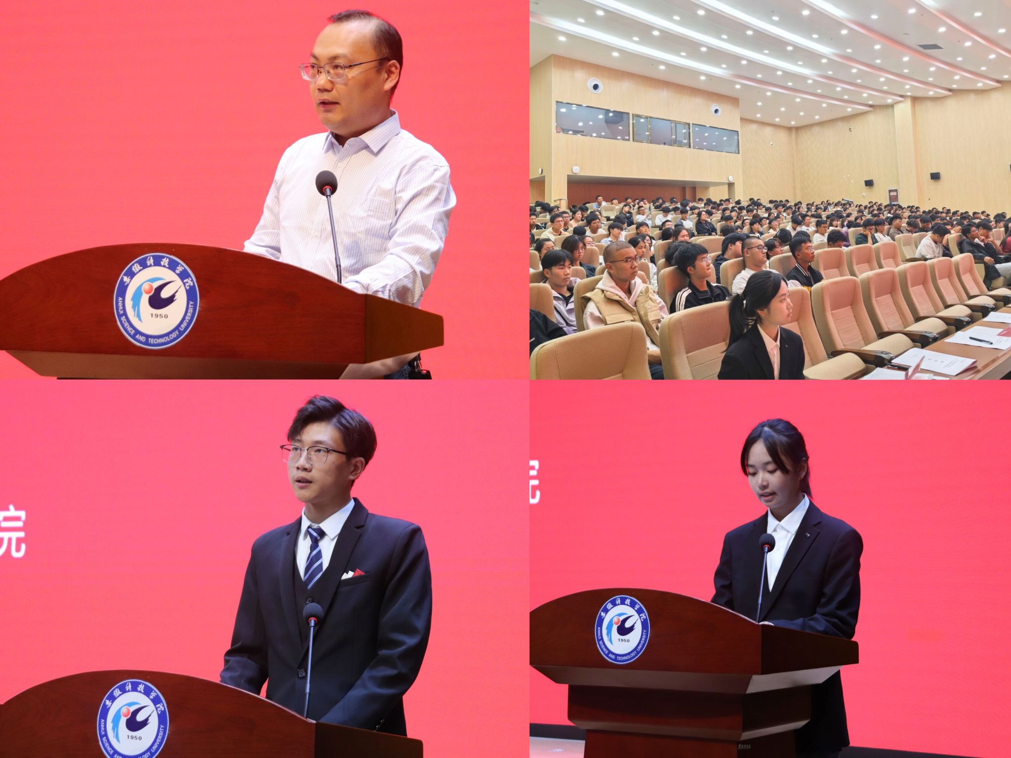 学院党委副书记、院长余宏杰在会上致辞,祝贺2024新同学们开始新的征程。在致辞中,他从“何为我的大学”、“大学的我若何”两个话题展开,强调了终身学习和提升认知力的重要性,建议同学们打破认知障碍,提升认知力、洞察力,增长智慧。他寄语广大新生,要尽快适应大学生活的节奏,树立目标,做好职业生涯规划,敢于面对生活和学业中的挑战,为学校、学院和自己的人生谱写更加辉煌的篇章!
