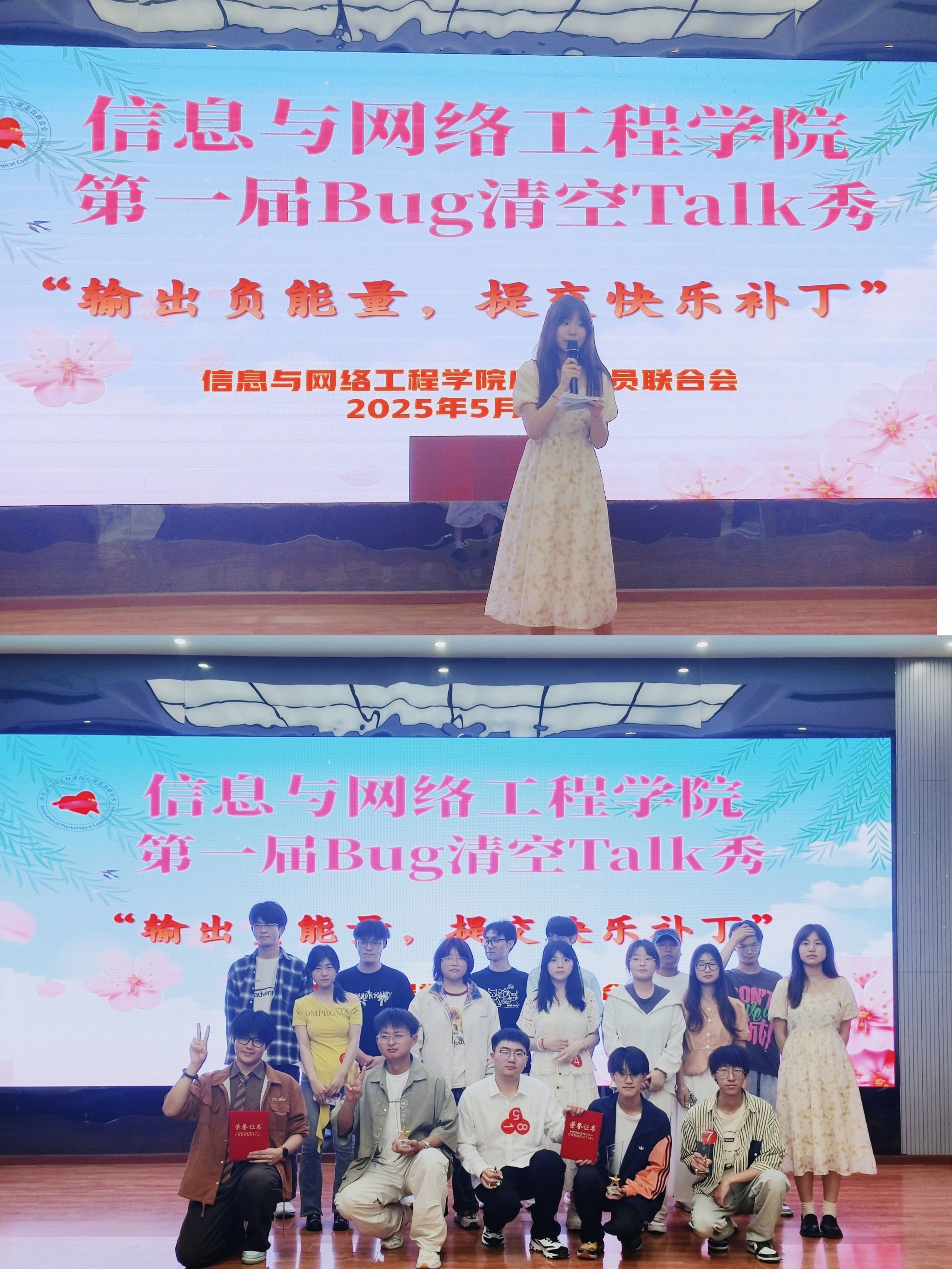 为搭建学生畅所欲言、释放压力的平台,2025年4月15日至5月25日,信息与网络工程学院心理委员联合会成功举办了“Bug清空Talk秀”心理健康活动。经初选,16位选手晋级决赛。活动中,选手们化身“心灵程序员”,围绕成长困惑、亲子关系、人际交往、职业规划等主题,以“心声汇报”形式坦诚倾诉“心理Bug”。现场氛围热烈,选手与观众互动积极。本次活动的成功举办,以创新形式有效帮助同学们释放了心理压力,提升了自我调适能力。(特约通讯员:陈凯 摄影:各班同学 审核:韦乃学 王振其)