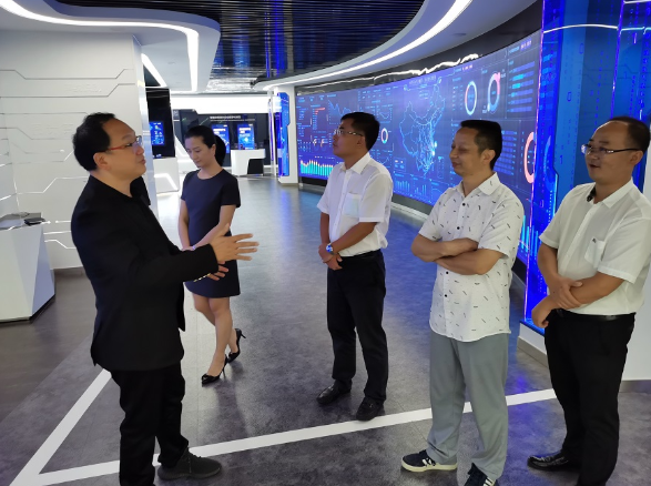 调研组一行首先参观了同盾科技“AI空间站”展厅,对公司的产品体系、应用场景及发展方向进行了详细了解。在展厅交流互动环节,马骏驱详细介绍了同盾科技智能风控解决方案、智能分析决策在金融领域的实践及行业智能反欺诈解决方案的最新成果及实践应用情况。了解到同盾科技助力杭州沪杭甬高速公路智慧交通工程建设、联合唐山银行共建唐山市中小企业综合金融服务平台等典型案例后,就数字蚌埠、科技赋能助力皖北地区数字化进程等领域的合作,双方均表达出了强烈的合作意愿。