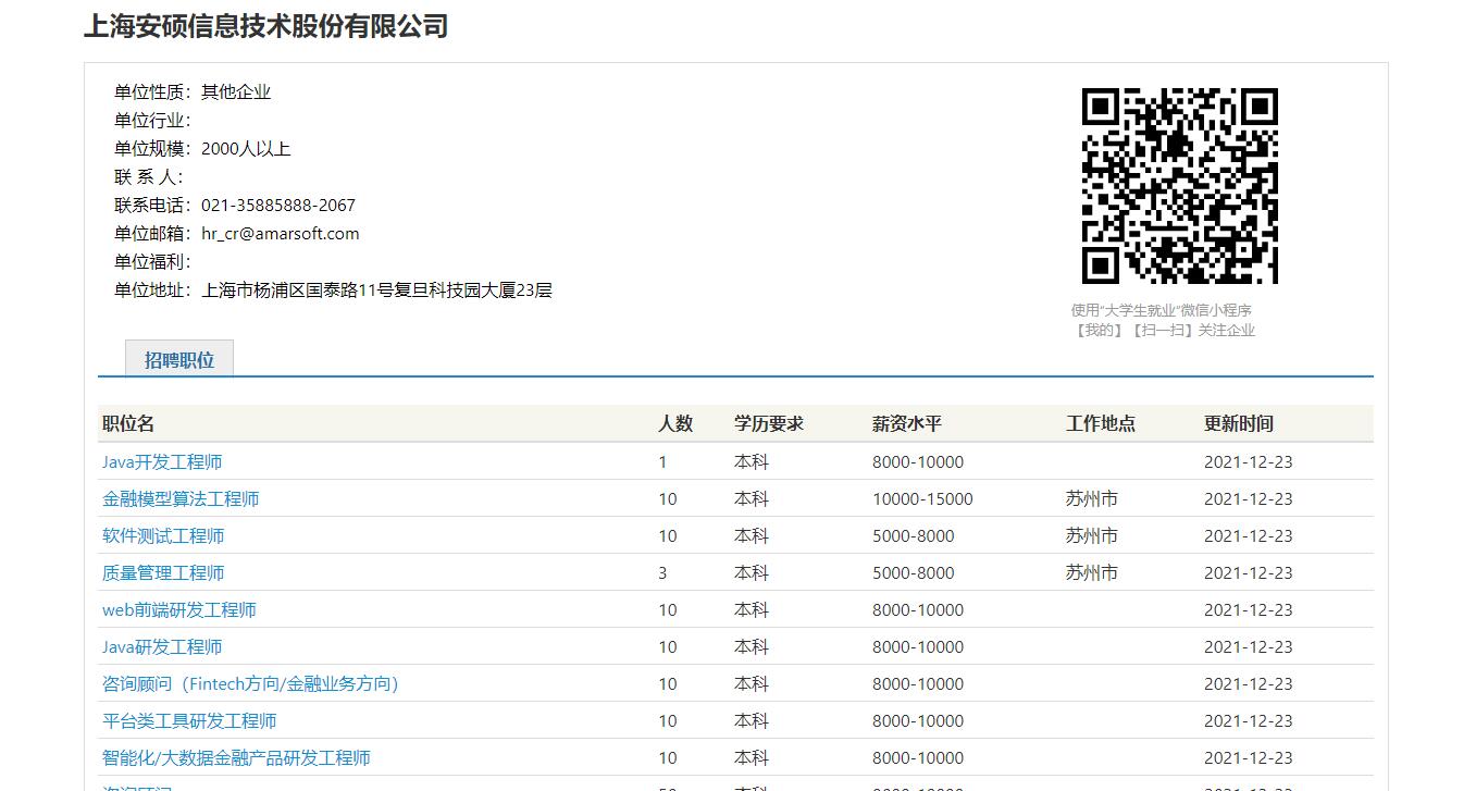 上海安硕信息技术股份有限公司招聘信息