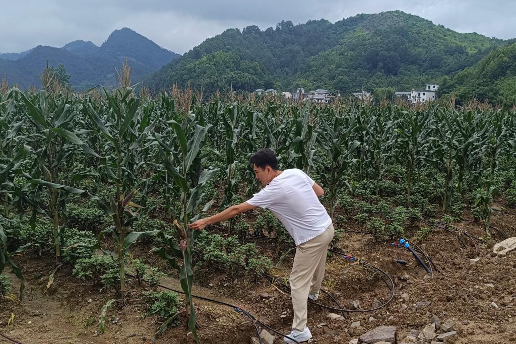 近日,在歙县溪头镇桃源村和溪头村,近千亩与菊花套种的鲜食玉米迎来了丰产丰收。菊花地套种玉米的生产模式,是该镇2022年在乐动网页版登录入口_乐动网页版(中国)歙县贡菊科技小院、县农学会等技术支持下,探索出防止耕地非粮化的新路径。在一块土地上,层次鲜明地套种经济作物和粮食作物,既保障了粮食安全,又增加了村民收入。