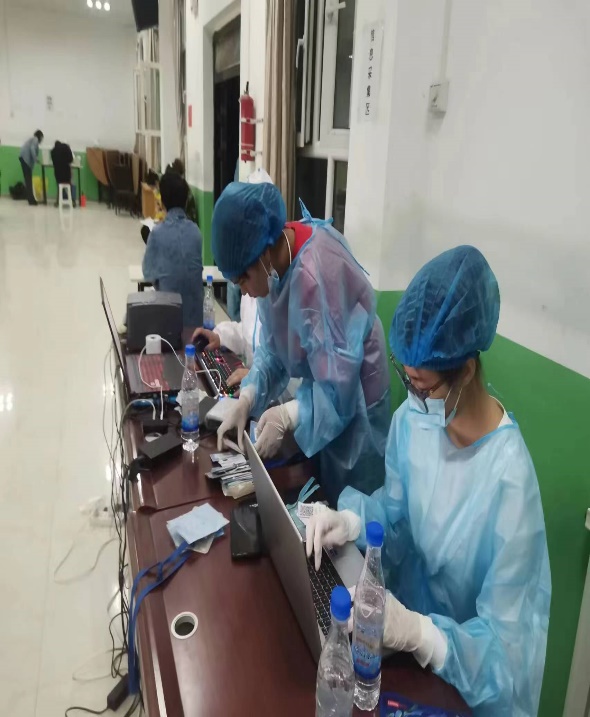 开展专业技术服务的同时,“六个核桃”志愿团队也积极参与到当地疫情防控工作中,就地转化为志愿者、网格员、宣传员,冲锋在前,协助访惠聚工作队组织村民开展核酸检测工作,完成一千余名村民的身份信息登记、核酸检测凭证分发、维持核酸检测现场秩序,准备核酸检测场地等工作。在受到村委会及驻村工作队的表扬与赞赏外,大家也深刻体会了防疫工作者的艰辛,向防疫工作者致敬。