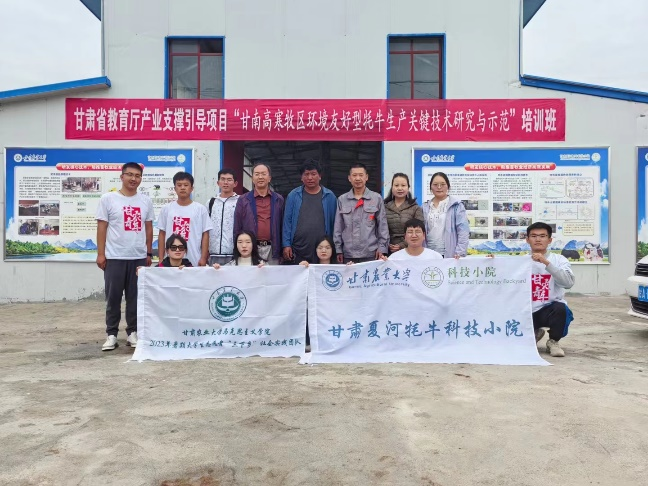 “甘肃夏河牦牛科技小院”团队由来自甘肃农业大学动物医学院的7名博士研究生组成,7名队员均是来自甘肃夏河牦牛科技小院的驻院研究生。他们以“科技助力乡村振兴”为主旨,围绕“解民生”“治学问”“保生态”“促团结”四项工作内容,在甘南州夏河县开展了以“甘南州牦牛种质资源保护与创新利用”“黄河上游生态环境治理”“牦牛常见疾病防治”“圈舍周边环境修复与生态保护”等内容开展了大量的志愿服务工作,用科技志愿服务助力当地乡村振兴,努力让牦牛养殖业成为促进甘南州经济发展、注重生态保护、增加农牧民收入、助力乡村振兴的富民产业。