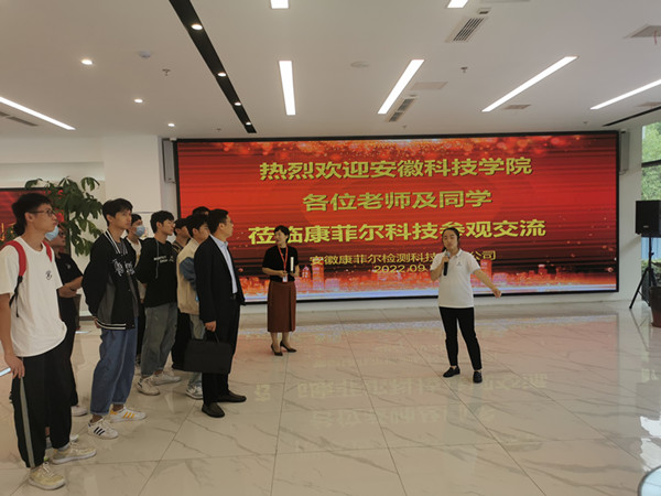 沈树周一行在安徽康菲尔检测科技有限公司郑文贤总经理的陪同下,参观了企业文化展厅、环境检测实验室和新材料检测实验室,聆听了企业对接国家环境保护政策,创新发展的历程。在随后的座谈会上,郑文贤着重推介康菲尔公司,从人才培养角度阐述了公司为青年人才搭建的平台优势和发展潜力。康菲尔副总经理于小兵系统介绍的公司的发展情况、主营业务和未来发展定位和规划,并向2019级农业资源与环境专业同学发出诚挚邀请,激励同学们发挥专业特长,服务行业发展。双方还就校企共建课程、科研项目申报与联合攻关、开展产学研合作、毕业生就业以及毕业实习等方面进行了深入的交流,达成了广泛共识和共同愿景。