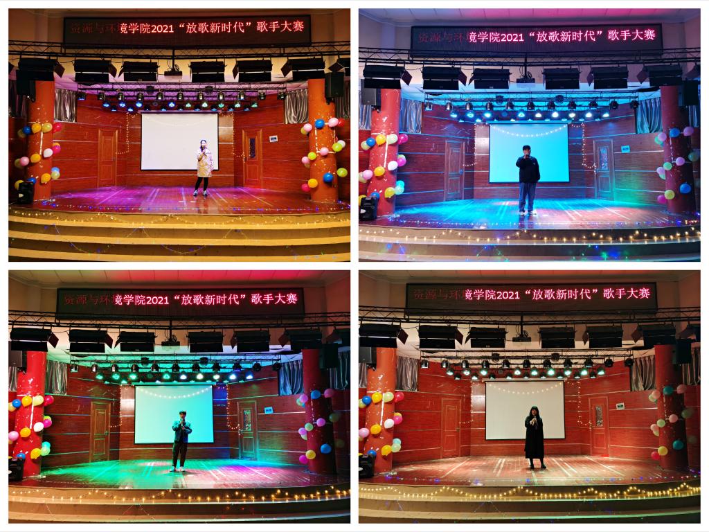 为庆祝中国共产党建党100周年,丰富大学生课余生活,4月11日晚,资源与环境学院于学术报告厅举行“放歌新时代”歌手大赛。农学院学生会主席孟冉冉、食品工程学院学生会主席崔帅、人文学院学生会主席杨祉龙、动物科学学院综艺协会会长徐麒麟、生命健康与科学学院星源艺术团团长李敏雪受邀担任本次大赛评委。