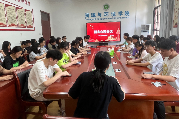 为扎实做好学院心理健康教育工作,及时了解学院学生的心理健康状况。6月9日中午,资源与环境学院于东办公楼207学院会议室召开期末心理委员会议.全体心理委员参加会议,会议由王丽萍老师主持。