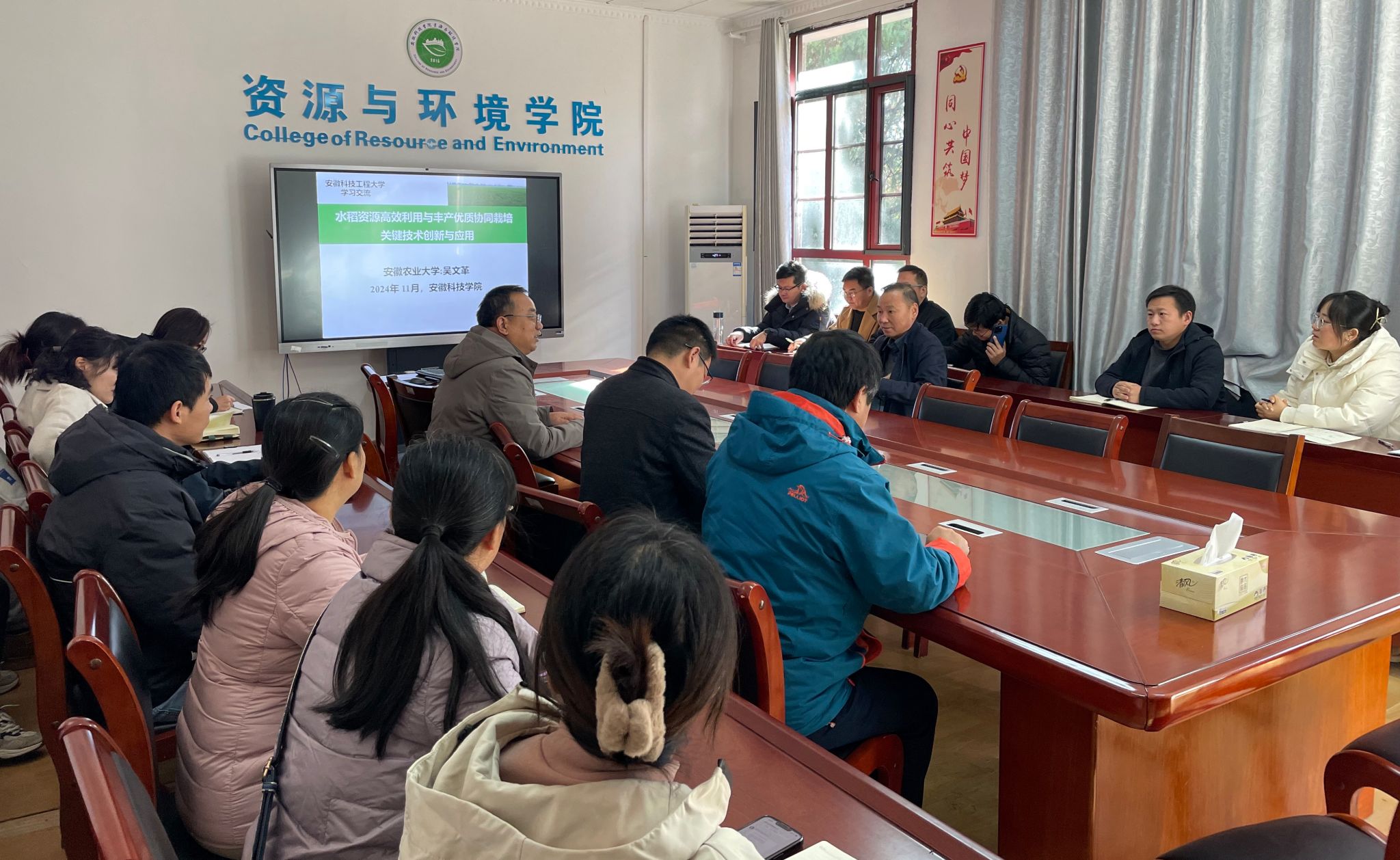 20241126日,安徽农业大学副校长吴文革研究员应邀为我院老师做学术报告并进行了科学道德和学术规范教育交流。资源与环境学院党政领导及相关老师参加了此次报告会,报告会由李孝良院长主持。