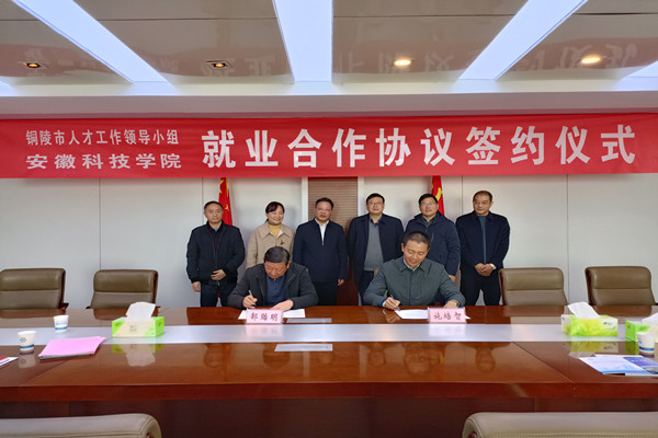 11月30日上午,我校与铜陵市就业合作协议签订仪式在凤阳校区举行。校党委委员、副校长黄远友,铜陵市委组织部副部长、市委老干部局局长刘金传出席签约仪式。招生与就业工作处、教务处、创新创业学院等部门负责同志参加仪式。